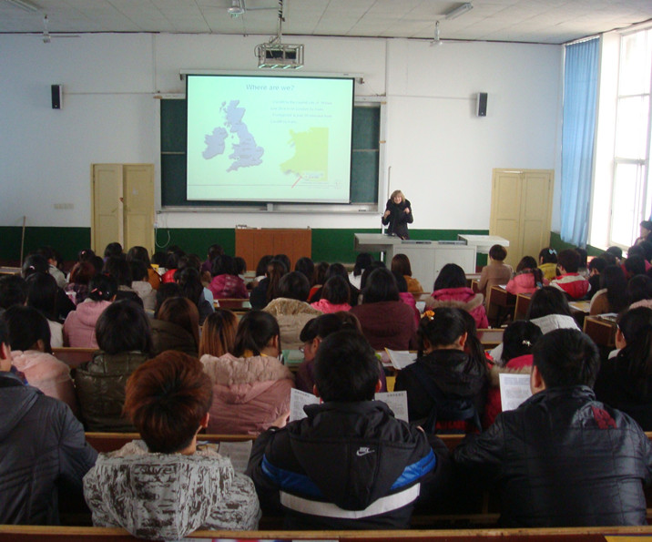 格拉摩根大学Helen女士用英文先向大家介绍了英国格拉摩根大学优越的地理位置与优美的校园环境。紧接着,Helen女士详细地介绍了学校的办学历史、教学资源与基础设施建设。随后,进入了现场互动环节,Helen女士热情地与同学们进行互动,气氛非常活跃,掌声不断。