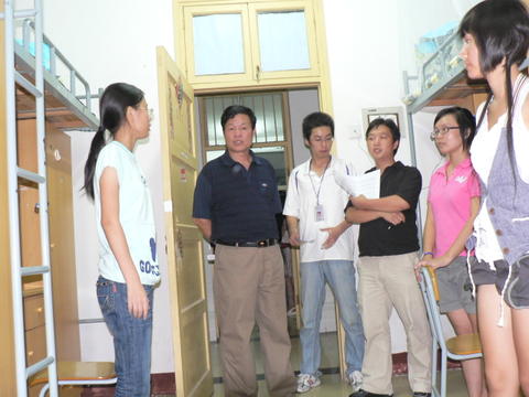 走访过程中,新生宿舍整洁的内务得到了学院领导、老师的赞赏,他们强调让同学们将这种好习惯保持下去,使自己的大学生活在有序条理中走向辉煌。王书记还特别强调了宿舍就是一个小的家庭,宿舍成员之间要融洽相处,互帮互助,学会宽容,学会理解,努力营造家的温馨,让每一个成员都能感受到宿舍内家一般的温暖。学院领导、老师仔细地询问了新生入学感受和对学院的适应情况,对新生提出的一些问题予以详细的解答,并希望同学们尽快完成从中学生到大学生的转变,尽快地适应学校生活,以积极的心态全身心地投入到全新的大学生活中去。