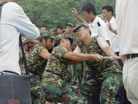 9月25日上午,我校新生军训第六团开展了拔河比赛。比赛采用三局两胜制和淘汰赛制,全团共13支连队参与比赛。 参加比赛的同学个个都精神饱满,洋溢着年轻人的活力和军人的坚毅。同学们的热情感染了教官和老师。比赛中,双方队伍你争我夺,旁边的啦拉队员也使出了浑身的力气为自己的队伍加油,紧张程度不稍逊于上场的队员。 经过激烈的角逐,最终一营二连和三营一连分别获得冠亚军。四营一连、二营四连分别获第三、四名。本次拔河比赛赛出了同学们的精神与风格,增进了整体的凝聚力和战斗力,也促进了同学们的友谊交流与沟通。