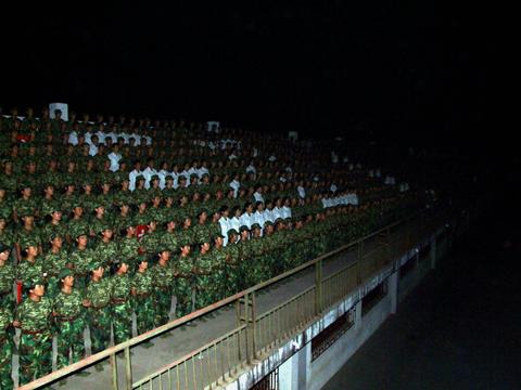 9月24日晚,我校在第一田径场隆重举行了2008级新生军训合唱比赛,比赛以营为单位,7000余名新生参加了此次比赛。