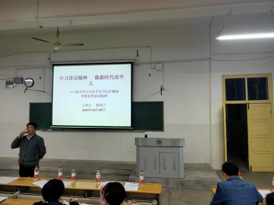 院党委书记阳剑兰老师作了“深入学习习近平总书记在湖南考察重要讲话精神”的专题党课。阳剑兰老师简要介绍了习近平总书记在湖南考察的行程、主要讲话精神,他指出,各位党员要深刻领会习近平总书记考察湖南重要讲话的重大意义,特别是对大学生讲话的精神,把学习贯彻讲话精神贯彻到树立高远理想、争做先锋表率、强化素质能力中去,在学习实践中自觉付出行动,攻坚克难,切实担负起新时代使命。