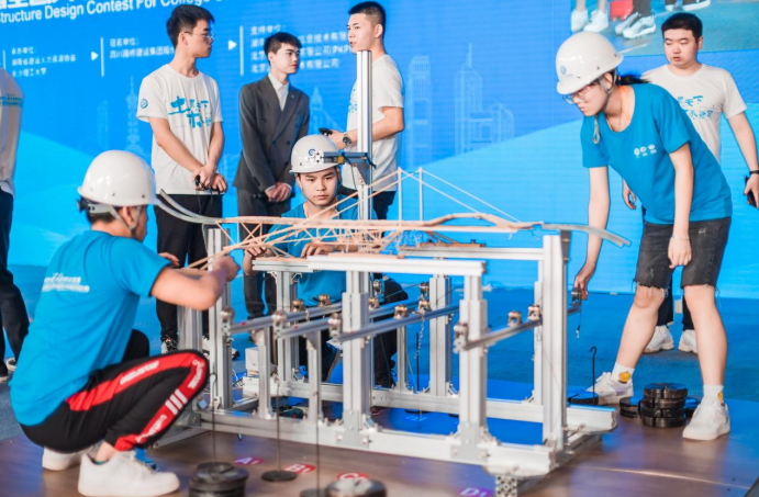 本次竞赛是由湖南省教育厅、住建厅联合主办;竞赛题目是:桥梁结构设计与制作。beat365官网参赛的2支队伍具备扎实的专业功底、坚韧的精神品质,在参赛前1个月已开始进行强化训练,由于白天学生有学习任务、指导教师有工作任务,大家只能利用晚上的时间进行训练和指导。临近比赛时,团队能够基本做到计算设计软件化、构件形式分类化、模型制作图纸化、试验加载流程化。