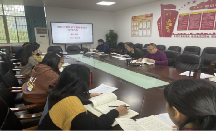 为贯彻落实湖南省教育厅《关于印发<“师德师风建设年”推进方案>和<“学位”突出问题专项整治工作方案>的通知》,进一步加强新时代教师队伍建设,牢固树立师者德为先的原则,强化师德师风建设,11月9日,beat365平台唯一官网在学院会议室以师德师风为主题组织教职工理论学习。学院领导班子成员、全体 教职工参加学习会,学院党委书记阳剑兰主持学习会。