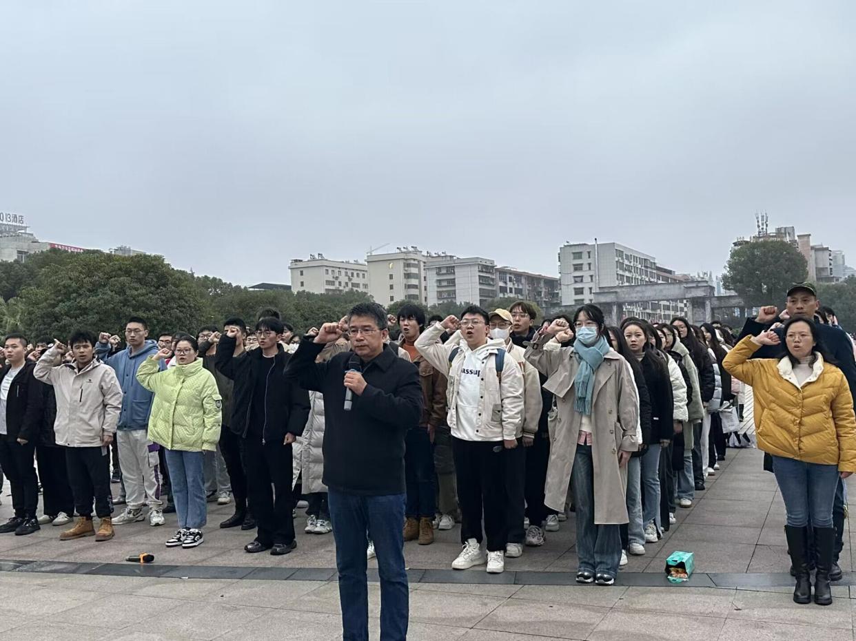 随后,学生代表易浩在国旗下进行了题为《以船山精神书强国篇章,以青春力量绘未来蓝图》的演讲,“十年寒窗诚然刻苦,四载春华更须拼搏”,他说:“我们新时代南华学子,应当激扬奋发有为的志气,在拼搏中释放激情、追逐理想,于时代华章上再添一笔南华少年意气飞扬!”