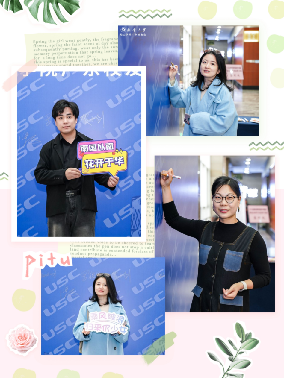 茶歇期间,校友们纷纷和“棒棒糖”“校门”合照。