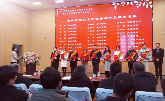 12月21日-23日,2023年湖南省独立学院联席会年会暨独立学院高质量发展论坛在张家界学院举行。湖南省教育厅民办教育处处长朱日红,湖南师范大学副校长杨震,衡阳师范学院副校长李玲玲,湖南省独立学院联席会理事长、湖南师范大学树达学院院长向坚持出席会议。全省 14 所独立学院的院长、党委书记等齐聚一堂,总结工作,规划未来,表彰先进,共话独立学院高质量发展。beat365官网院长曾庆生、院党委书记阳剑兰、正处级组织员伍衡山及受奖人员参会。