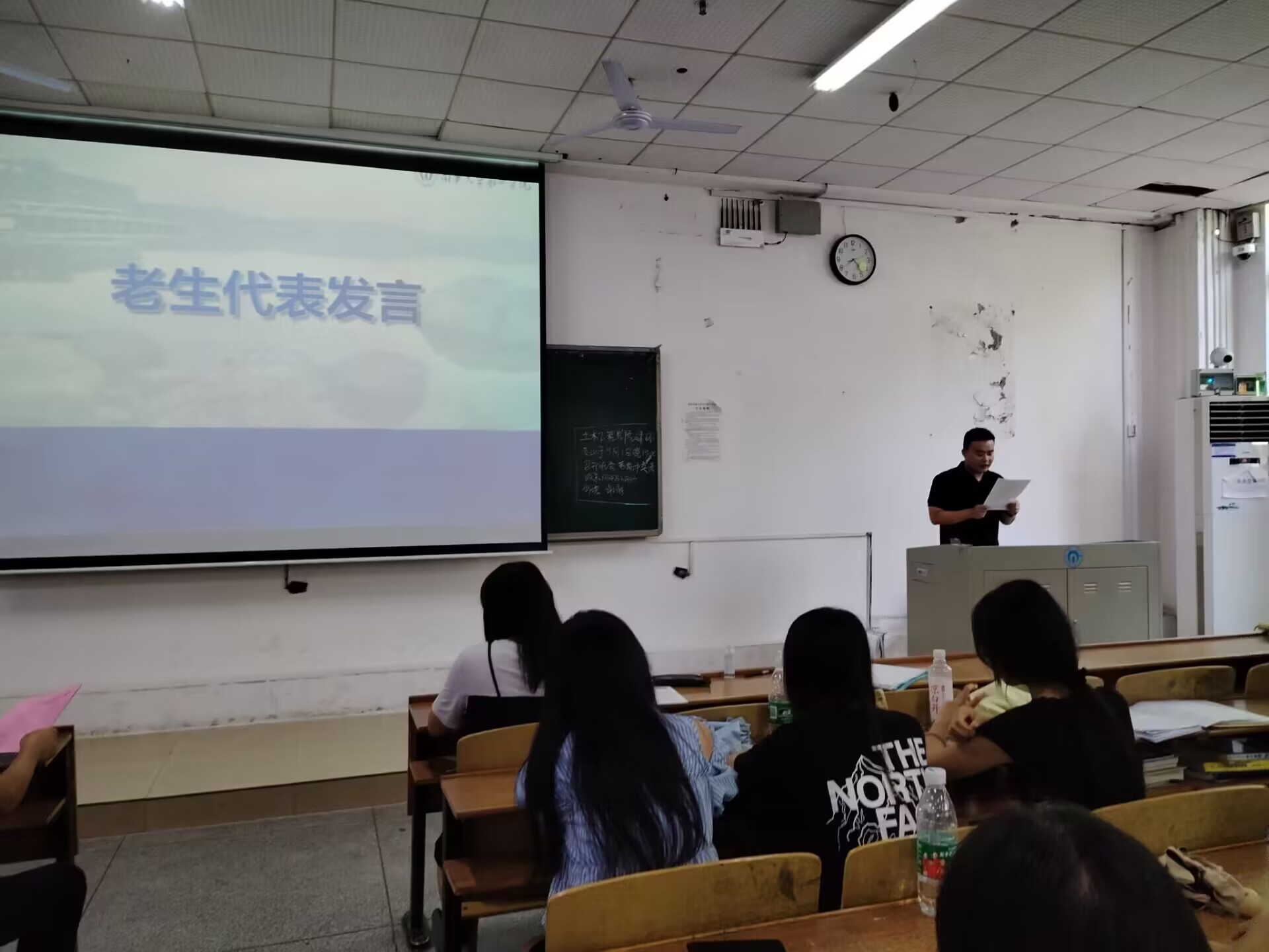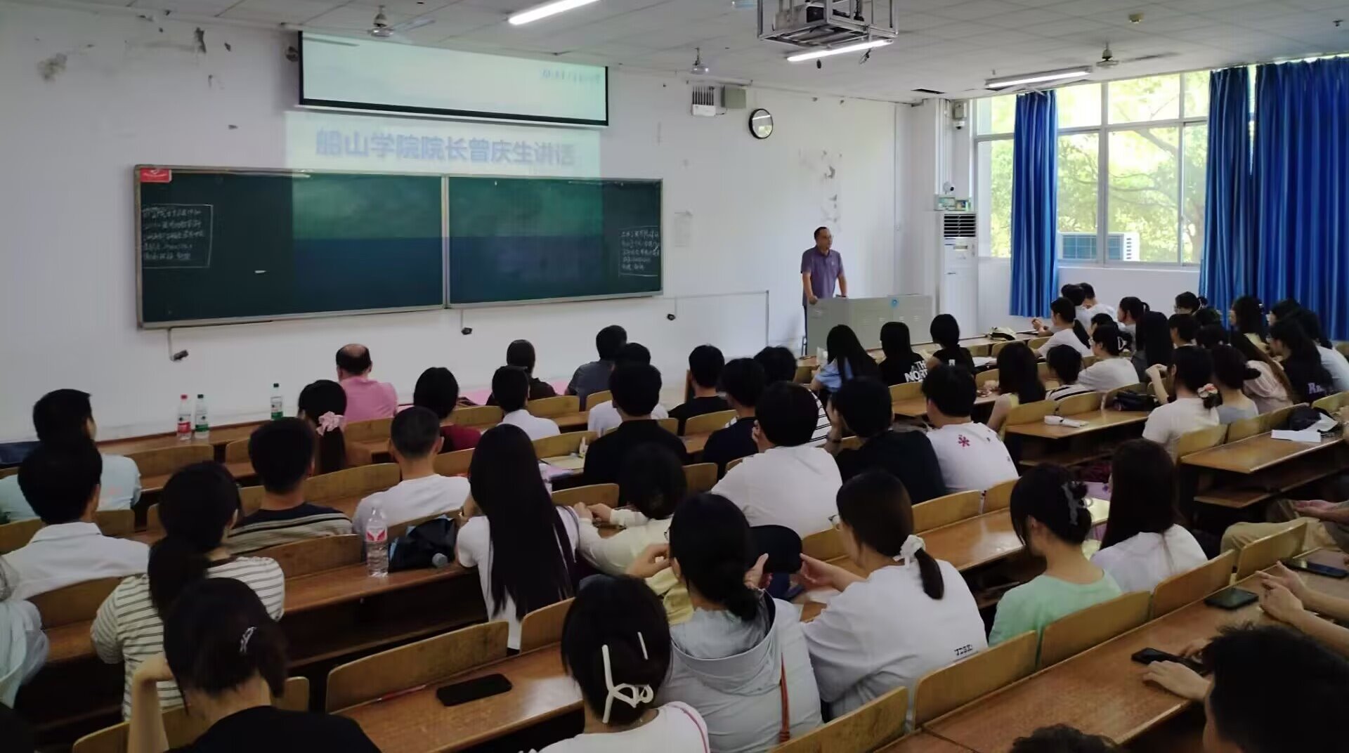 曾庆生院长发表讲话,他以院长、老师、家长三种身份提出意见和看法。并提出三点建议:一是要养成良好的作息习惯,有健康的身体才是更好发展的根本;二是要好好珍惜在大学里面的学习机会,掌握一门真正的技术,能够在未来的激烈竞争中立稳脚跟;三是要保持自律,合理安排时间,无悔于大学本科生活。