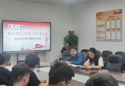 5月28日下午,beat365平台唯一官网工科第一学生党支部在党员会议室开展“青春向党、不负韶华”党史学习读书分享会,会议由工科第一学生党支部书记王璇主持,beat365平台唯一官网党委书记阳剑兰出席,支部全体学生党员参加会议。