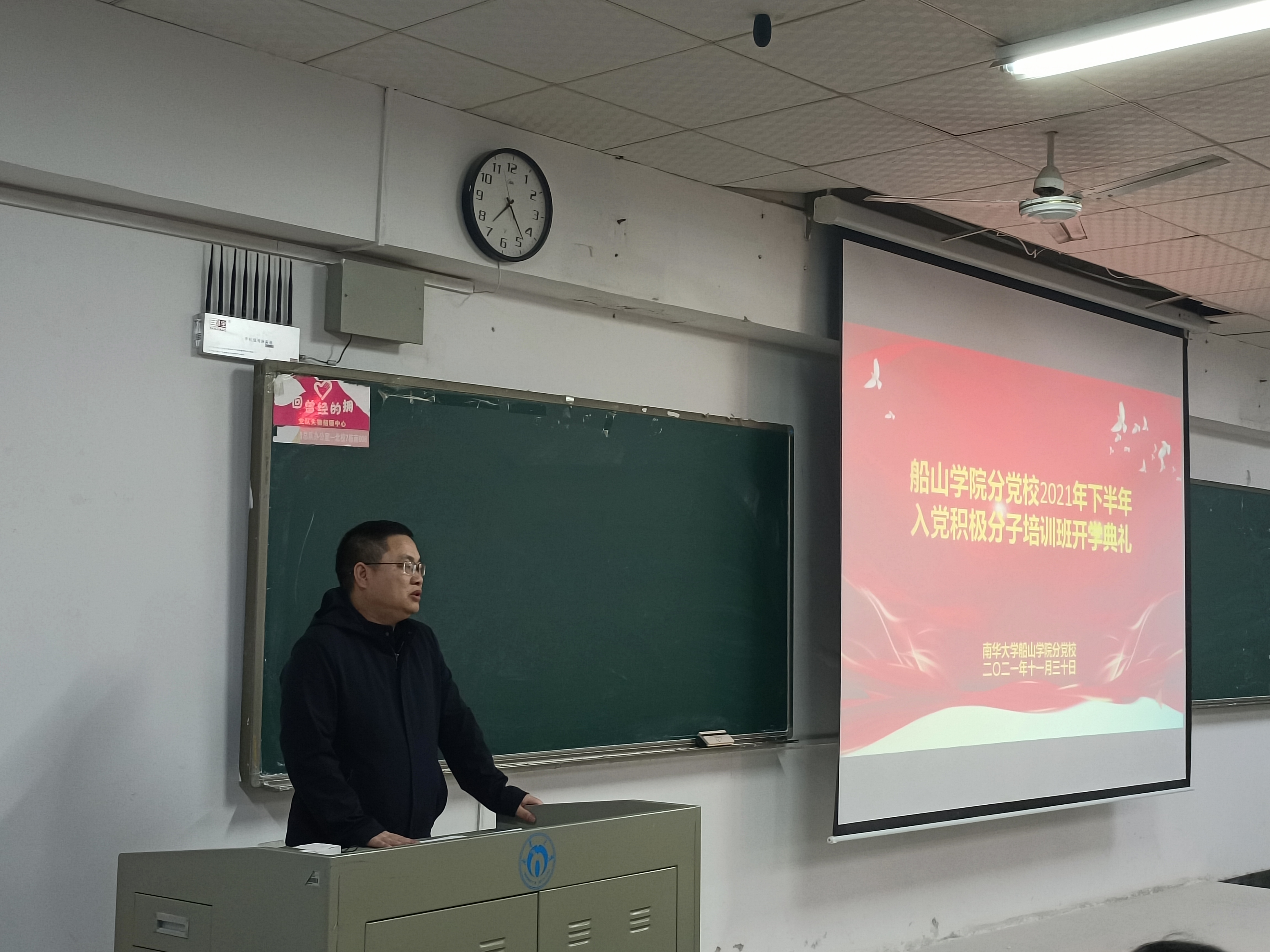 11月30日晚,beat365平台唯一官网分党校在红湘校区南华楼311教室举行2021年秋季学期入党积极分子培训班开班典礼。beat365平台唯一官网党委书记、分党校校长阳剑兰老师、院党委副书记刘期彪老师,学生党支部书记周英老师和江娴老师出席开班仪式。仪式由刘期彪副书记主持。