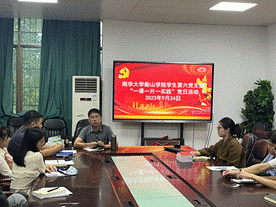 学院学生第六党支部于9月24日晚举行了学习贯彻习近平新时代中国特色社会主义思想主题教育专题组织生活会,学院党委书记阳剑兰参加,第六党支部全体党员同志与会。
