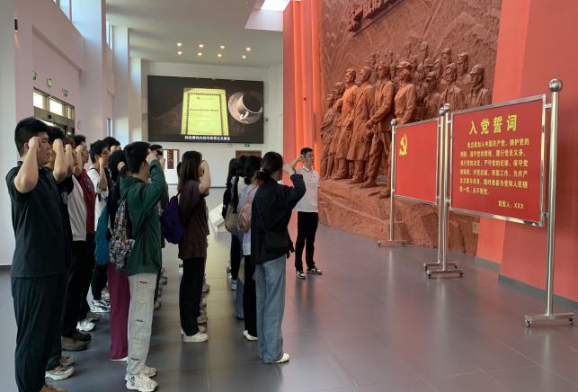 当天,全体师生党员在夏明翰党性教育基地进行参观学习后重温入党誓词。“信仰是光”“信仰是铁”“信仰是路”三个展厅,各位党员跟随讲解员的步伐,边走边看边听,对革命先烈的光辉历史又有了进一步了解,深切地感悟到革命先辈们英勇顽强、不屈不挠的战斗精神。