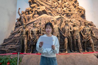 在纪念馆入口,学院党委书记阳剑兰带领全体党员重温了入党誓词并做党风廉政建设微宣讲,要求各位党员充分发挥先锋模范作用,树牢廉政思想防线,提高反腐倡廉意识和法律意识,带动周边群众积极营造良好氛围。各支部党员代表也围绕近代工人运动、廉洁家风等主题分别上前做廉政微宣讲。
