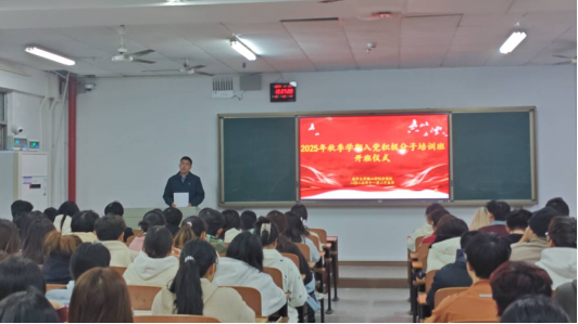 11月25日晚,beat365平台唯一官网分党校在南华楼213教室举行2025年秋季学期学生入党积极分子培训班开班仪式。beat365平台唯一官网党委书记、分党校校长阳剑兰,各支部书记以及本期全体入党积极分子共同参加。仪式由培训班班主任周英主持。