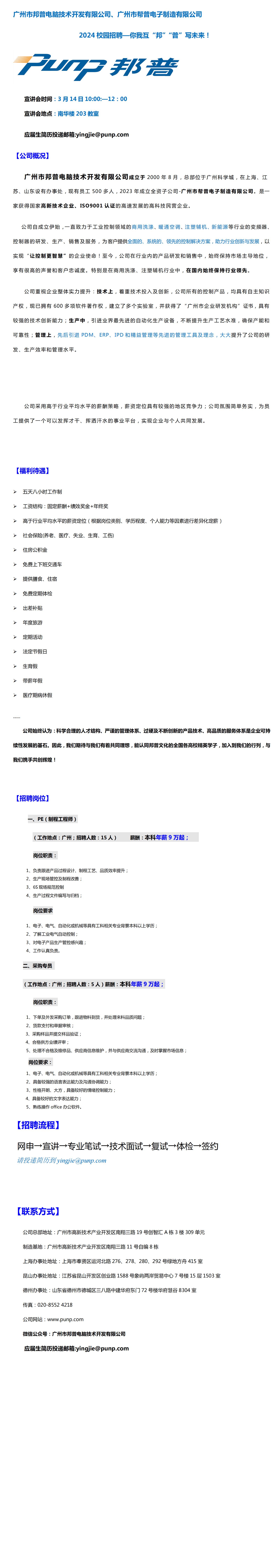 广州市邦普电脑技术开发有限公司、广州市帮普电子制造有限公司2024届春季校园招聘