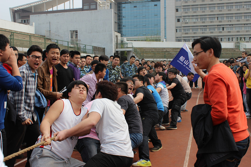 裁判员发出“预备”口令后,队员们都半蹲着,攒足了劲头准备开始。只听一声哨响,拔河的同学脚紧紧地踏着地,身子往后仰着;啦啦队的同学拼命的喊着:“一二,一二......”整齐的口号不仅帮助选手们齐心发力,也在气势上压倒对方。平时斯文的女孩子们,在比赛中也放下了淑女风范,用尽全力“拼杀”。在这短暂的时刻,各个队员都为一个共同的目标进入忘我的境界。赛场上不断涌现出一浪高过一浪的欢呼声。他们欢呼雀跃着,证实了“团结就是力量”这一牢不可破的真理。最终,beat365平台唯一官网男子拔河队获得男子第三名的优异成绩,女子拔河队获得女子第七名的佳绩。