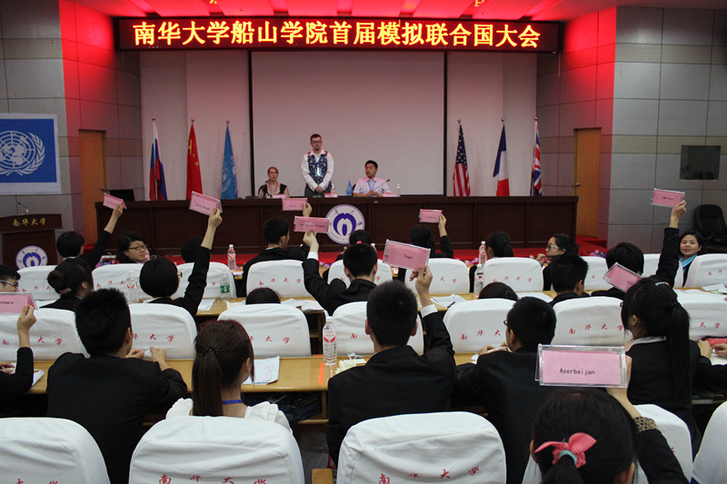 在两个多小时的会议中,40多个同学就“恐怖主义活动对世界和平与安全的威胁问题”为议题分别展开讨论。同学们分别扮演中国、俄国、法国、美国、英国、阿根廷、澳大利亚、阿塞拜疆、危地马拉、卢森堡、摩洛哥、巴基斯坦、卢旺达、南韩、多哥等国的国家代表,以联合国大会的形式,亲身体验观点阐述、政策辩论、投票表决、做出决议,以此来了解人类所面临的共同问题,并思考自身可以发挥的作用。各代表们全身投入了激烈辩论之中,尤其是在非正式辩论环节中,各代表相互驳斥、群枪舌剑,积极发表本国立场意见。最后,经各国代表的多次投票,决议草案因“中国代表”的一票否决而没能通过。大会结束后,经各位老师商议,评选出了“南韩”、“中国”、“美国”三个最佳代表团,以及王岚、梁紫薇、朱傲等最佳代表。