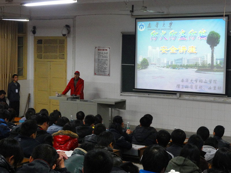 讲座开始之前,肖维华老师在发言中强调,第一、安全无小事,一定要高度重视安全工作,提高大家的安全防范意识。第二、要从以往的事故中吸取经验和教训,并引以为戒,防止事故的发生。第三、要认真负责的开展校园的“三防”知识普及活动,加强宿舍的“三防”安全管理。希望同学们吹响安全的号角,向着平安、幸福的生活前进。随后,理工科宿管部长姚利,女生部部长颜荣钦分别运用大量深刻的事例为大家阐述了“三防”工作的重要性和必要性,如何正确的避免“三防”事故的发生,以及一些常见的“三防”事故的应对措施。并现场演示了干粉灭火器使用。