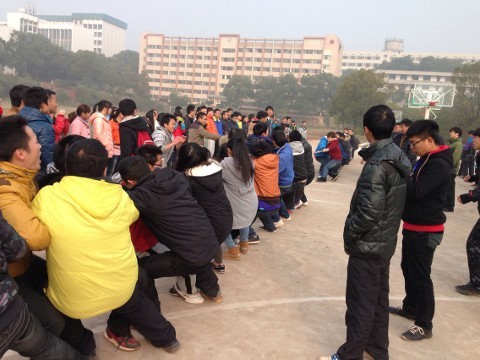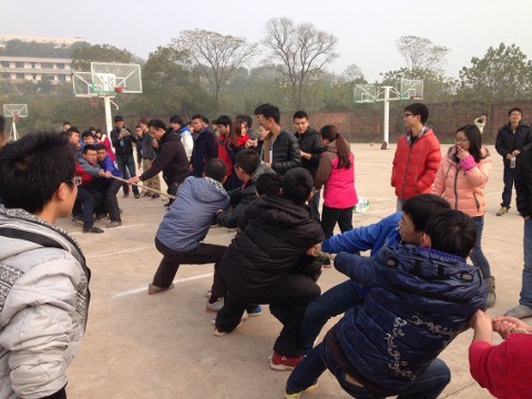 2013年12月21日(星期六)上午,拔河比赛在beat365平台唯一官网雨母校区老篮球场正式开始。参加本次比赛的学院共有八个,每个学院选出男女混合代表队,每个学院均有同学到场观看比赛,并为选手们加油、鼓劲。
