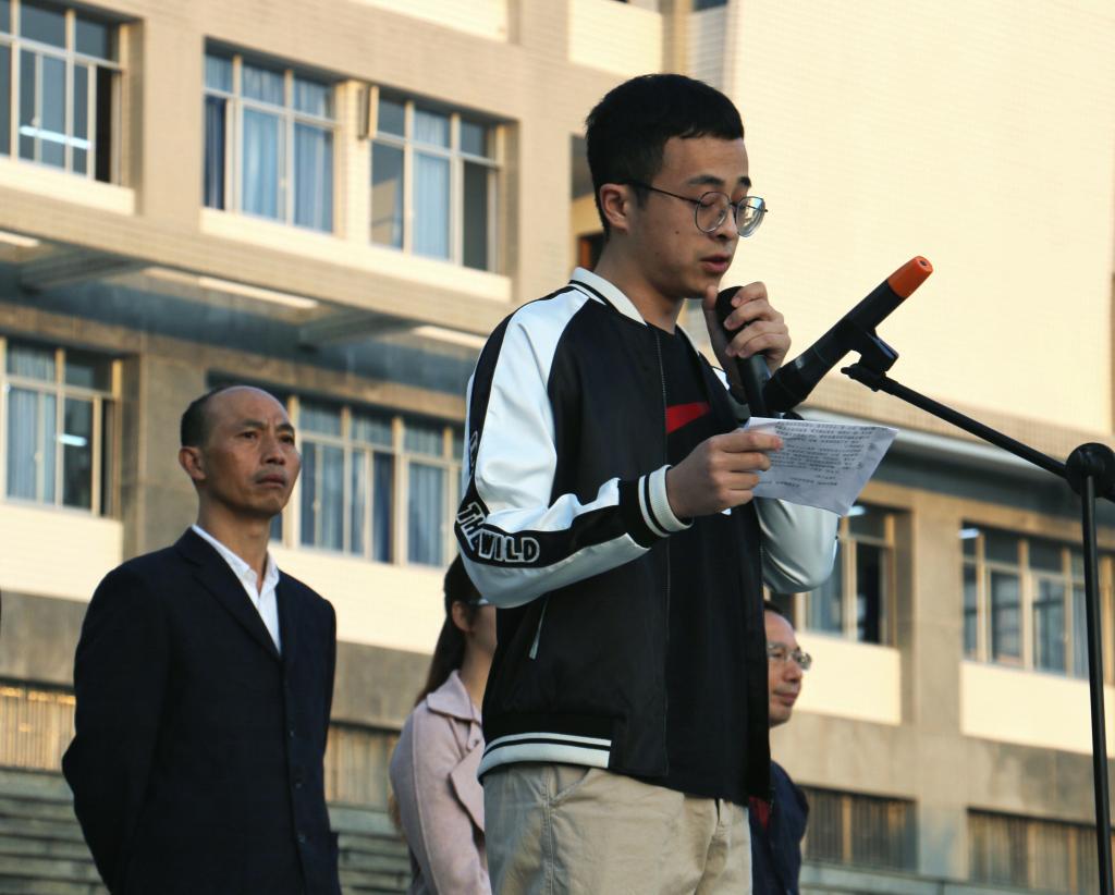 本次升旗仪式分四项进行。第一项,升国旗,奏国歌,行注目礼。李庆老师宣布升旗仪式开始后,国旗班的旗手迈着庄严而整齐的步伐走到旗台下。“升国旗,奏国歌,行注目礼”伴随着庄严嘹亮的国歌,五星红旗冉冉升起,全体师生怀着崇敬的心情,凝视着迎风飘扬的五星红旗,心中无比自豪。随后,校歌响起,升旗手迎着初升的太阳缓缓升起校旗。第二项,由16级学生代表土木二班王野同学做主题为“改革铸就辉煌,奋斗实现梦想”国旗下的演讲,字里行间表达了出了对祖国的热爱之情,以及船山学子通过勤于学习,积累知识来实现理想的决心。仪式第三项,由15级环艺一班肖与轩同学代表全体学生进行“甲子相传,我辈自强”主题的国旗下演讲。演讲中回顾了beat365平台唯一官网60周年的历史,表达了对母校的热爱及祝愿,同时也让beat365官网学生领悟到一分耕耘,一分收获之定理。