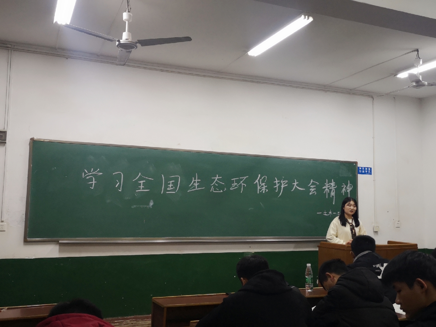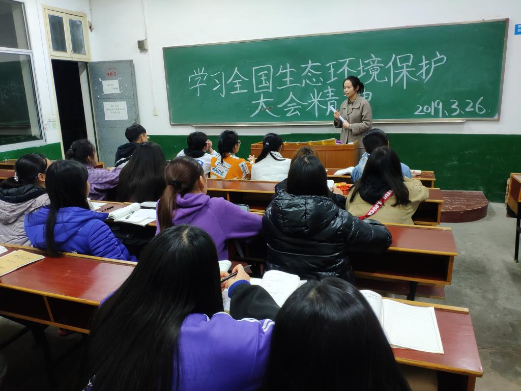 3月26日晚,各班展开了以“学习全国生态环境保护大会精神”为主题的党课,在思想上、精神上、学习上各班,可谓是“百花齐放,百家争鸣。”此次在个别班级会议上,有范老师、旷老师的真诚、热心的指导,她们分别在会上,强调了学生学习全国生态环保大会精神的重要性,并提出作为一名大学生应该勇于担当、广泛学习优良精神的重要性有关内容。会议中范老师、旷老师与学生之间的互动,积极调动了学生的学习热情,老师的督促,促使这次党课学习,更有意思、更有深度、更引人深思。班委们任劳任怨的殷勤付出,同学们认真、懂得的积极学习,短暂的党课课堂上,洋溢着青春活力。