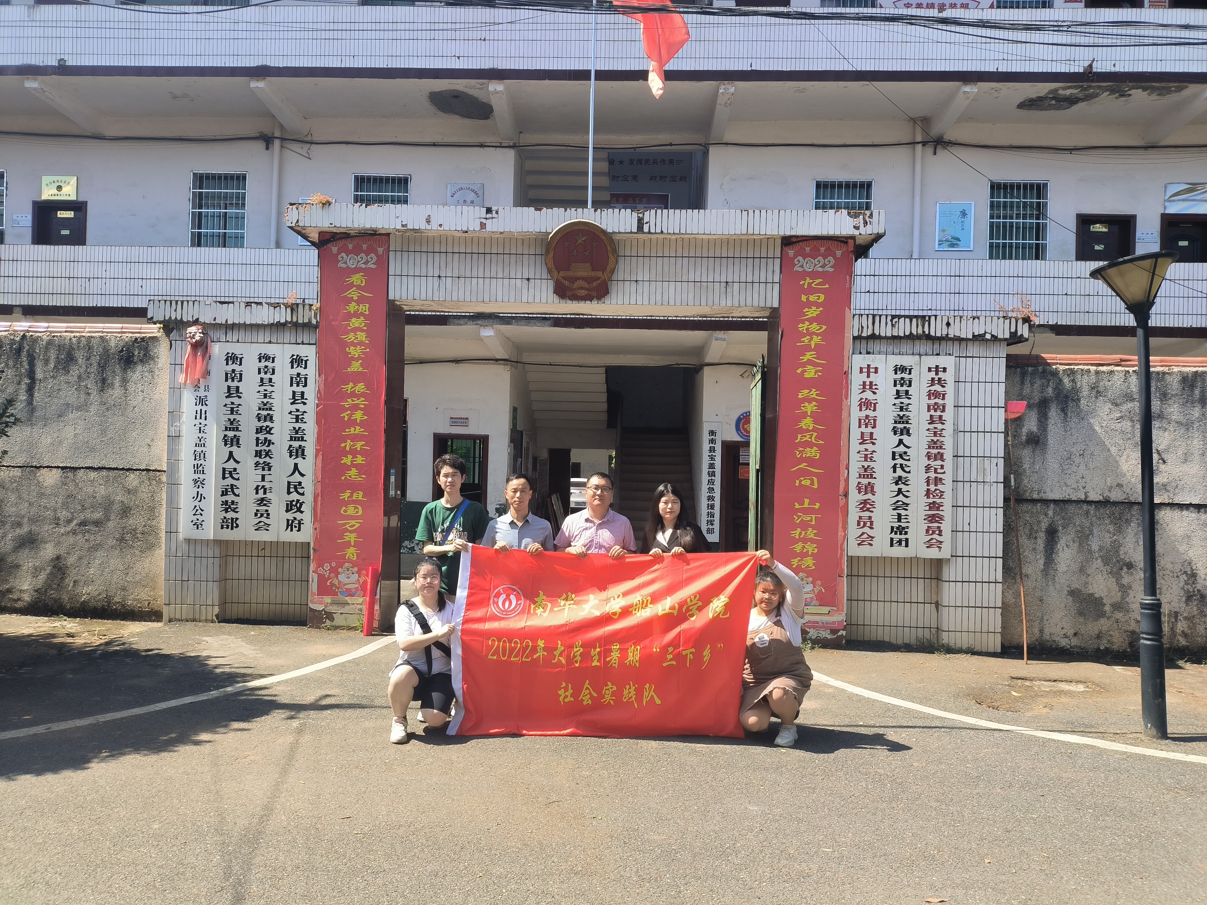 为深入学习贯彻党在十九大报告中提出的乡村振兴战略,近日,“beat365平台唯一官网赴衡南县宝盖镇社会实践调研团队”结合当前人口老龄化的实际现状,为助力乡村振兴,促进智慧健康养老产业发展,beat365平台唯一官网暑假社会实践调研队在许媛媛老师的带领下赴衡南县宝盖镇开展了为期3天的暑假“三下乡”社会实践活动。