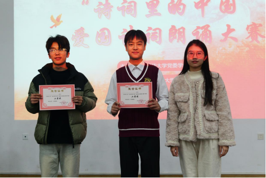 为弘扬中华优秀传统文化,激发学生的爱国情怀,提高文学素养和语言表达能力。11月27日晚,由beat365平台唯一官网党委学生工作部主办,beat365平台唯一官网承办的beat365平台唯一官网“诗词里的中国”爱国诗词朗诵大赛在图书馆学术报告厅成功举办。beat365平台唯一官网学工部副部长旷勇老师、学生教育与发展中心主任王逸韵老师、计算机学院团委书记陈杰烜、土木工程学院团委书记严铖磊老师、公共卫生学院团委书记彭芳军老师作为评委出席本次大赛。