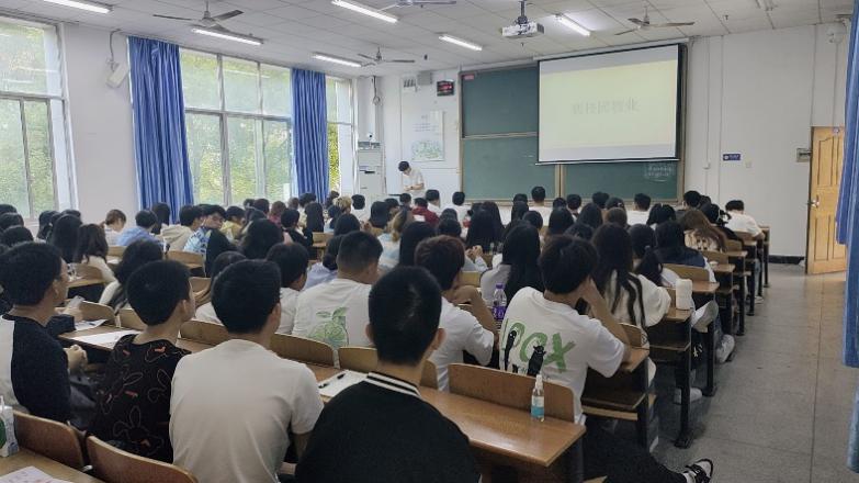 涂泽学长围绕创业主题讲述了四个方面的内容,第一、创业首要因素“发心”。他结合高考经历告诉同学们要找到自己的“初心”,然后用实际行动不断证明自己。第二、先去观世界才有世界观,涂泽学长分享了在校送外卖,开宿舍零食店,卖美妆等经历,鼓励学生们趁着年轻,多尝试多行动。第三、要永远向上。要与比你更优秀的人为伍,和自己相关事业的人去交流去学习,拒绝无用社交。第四、人生就是一场修行,得之坦然,失之淡然。他表示人生是一场修行,面对选择时应把主观意识与客观实际相结合,多加思考。