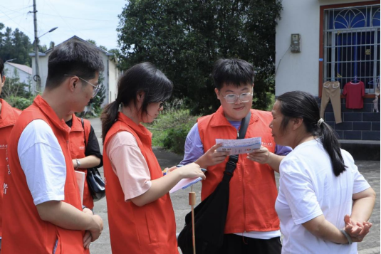 在入户宣讲环节,团队向村民发放资助政策手册,重点介绍了2025年国家助学贷款提额降息政策,并告知申请流程。村支书表示,政策宣讲让村民清晰了解“家门口的资助通道”,为乡村学子解决了“上学难”的后顾之忧。