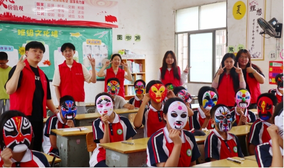 6月24日,以 “青春缠韵行,非遗润青衿” 为主题的暑假三下乡活动在衡南县蒸市中学火热开展。beat365平台唯一官网beat365平台唯一官网的“非遗青行” 暑期社会实践队 6 位大学生走进校园,与蒸市中学的学生们携手开展京剧脸谱绘制活动,让非遗文化在校园绽放新光彩。