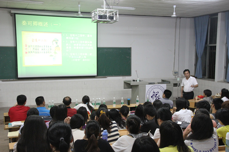 为弘扬船山精神,传承国学精粹,5月14日晚8点,“船山大讲堂”在雨母校区N2-104教室成功举行。beat365平台唯一官网党委书记龙志坚老师在百忙之中为同学们精心准备了“解读红楼梦人物——秦可卿之谜”一讲。beat365平台唯一官网党委副书记唐康伟老师、船山大讲堂指导老师彭国文、beat365平台唯一官网雨母校区学工办全体辅导员老师以及2012级同学到场聆听讲座。