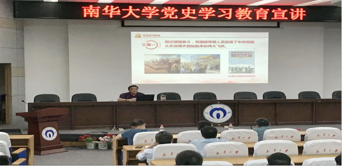 于涛副校长指出:“在中国特色社会主义新时代的今天,我们要把握百年党史与南华发展的联系,深刻感悟百年党史南华篇章的作为与担当。学史明理、学史增信、学史崇德、学史力行,学党史、悟思想、办实事、开新局,沿着习近平总书记指引的前进方向,为落实‘三高四新’战略、为加快推进高水平大学建设凝聚磅礴力量,奋力谱写新的历史篇章!”