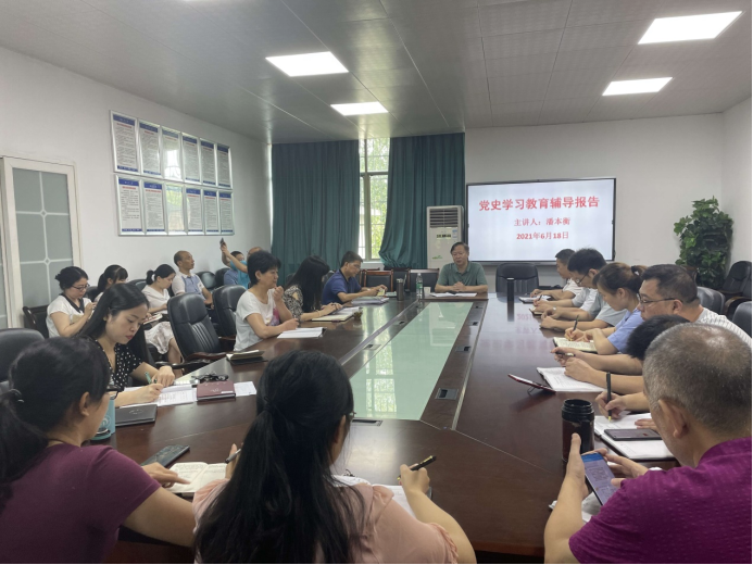 潘本衡从深入学习领会党史学习教育的意义、认真研读党史基本著作重要性、深刻把握开展党史学习教育的重点内容和开展党史学习教育的落脚点等4个方面进行讲解。深刻阐述开展党史学习教育的重大意义,要学史明理,从党的非凡历程中感悟马克思主义的真理力量和实践力量,深化对中国化马克思主义既一脉相承又与时俱进理论品质的认识,坚持不懈用党的创新理论最新成果武装头脑、指导实践、推动工作;要学史增信,从党的非凡历程中感悟马克思主义的真理力量和实践力量,深化对中国化马克思主义既一脉相承又与时俱进理论品质的认识,坚持不懈用党的创新理论最新成果武装头脑、指导实践、推动工作;要学史崇德,从党的非凡历程中感悟中国共产党跨越时空、永不过时的伟大精神,发扬红色传统、传承红色基因,把红色江山代代传下去;要学史力行,从党的非凡历程中感悟党在不同历史时期成功应对风险挑战的丰富经验,增强应对风险、迎接挑战、化险为夷的能力水平。