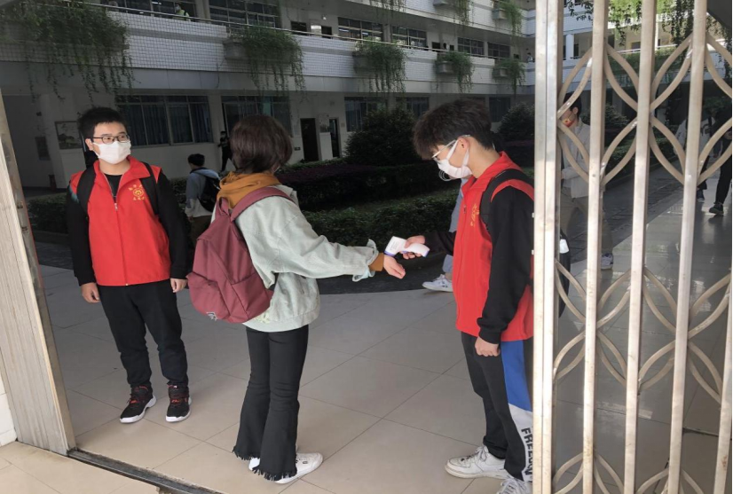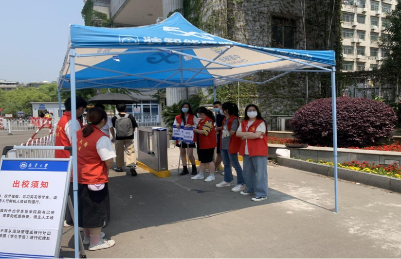 beat365官网师生党员们穿上志愿者马甲在学院东门、南华楼、宿舍区认真值守,加强排查,严格执行出入管控,做好扫码登记、测量体温、宣传解释等工作,以最严格的标准、最严密的措施做好学校疫情防控各项工作,筑牢疫情防控基础防线。