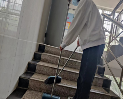 娄底市中心医院见习队的学生党员还对科教楼的楼梯进行了打扫并将电梯进行了消毒。