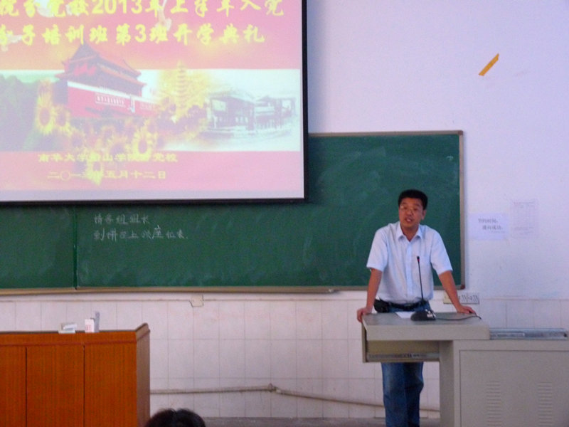 5月12日,2013年上半年beat365平台唯一官网分党校入党积极分子培训班第3班开学典礼在雨母校区N2-204教室举行。beat365平台唯一官网党委副书记唐康伟老师、beat365平台唯一官网学工部部长李庆老师、雨母校区学工办负责人、学生第七党支部支部书记李翠新老师及全体辅导员出席典礼。