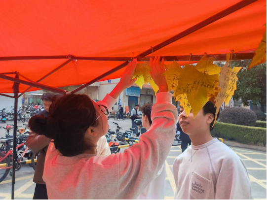 活动以落叶为载体, 鼓励同学们书写冬日寄语,内容涵盖自我鼓励、对友人的祝福以及家人的思念等。在这个数字化时代,该活动让参与者暂时脱离虚拟网络,亲自体验笔尖触碰落叶的细腻触感和书写的温度,重拾质朴情感交流方式。